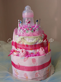 Η δεύτερη τουρτίτσα, προορίζεται για τη μπεμπούλα ενός ζευγαριού από τη δουλειά μου, που γεννήθηκε το Μάρτη. Αν και είχα πει στην αρχή να μην βάλω καθόλου ροζ, τελικά δεν μπόρεσα να το αποφύγω-γίνεται πριγκίπισσα χωρίς ροζ, δε γίνεται!